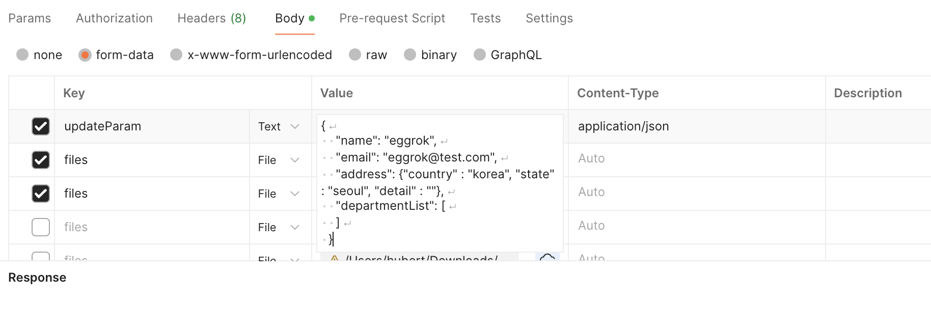 multipart/formdata 파일업로드 api에서 발생하는 에러에 대한 처리 내용.